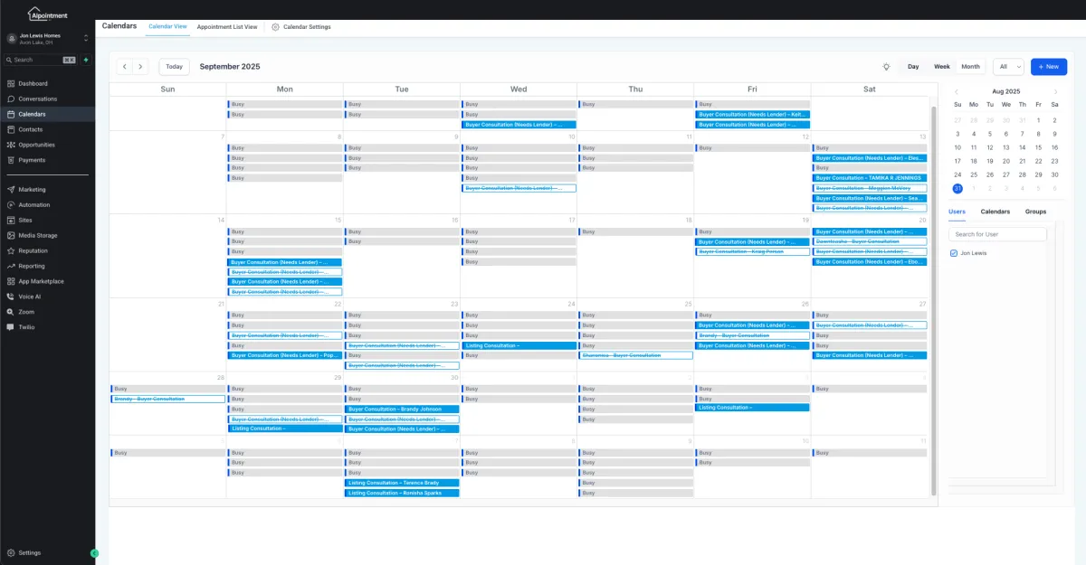 AIpointment is a done-for-you follow-up and appointment-setting system. We use AI-powered SMS, phone calls, and email to nurture your leads, identify interested prospects, and book conversations so you only speak with people who are ready to talk.
