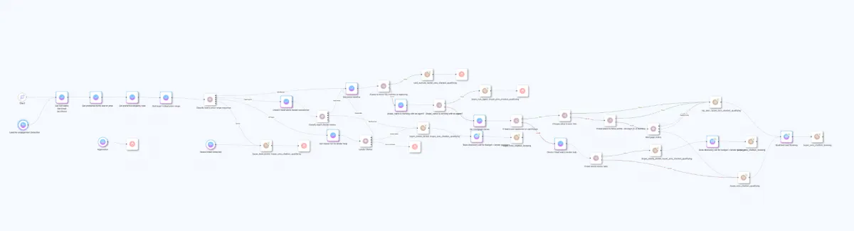The system handles follow-up and qualification only.